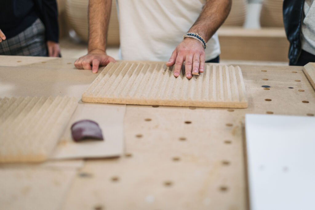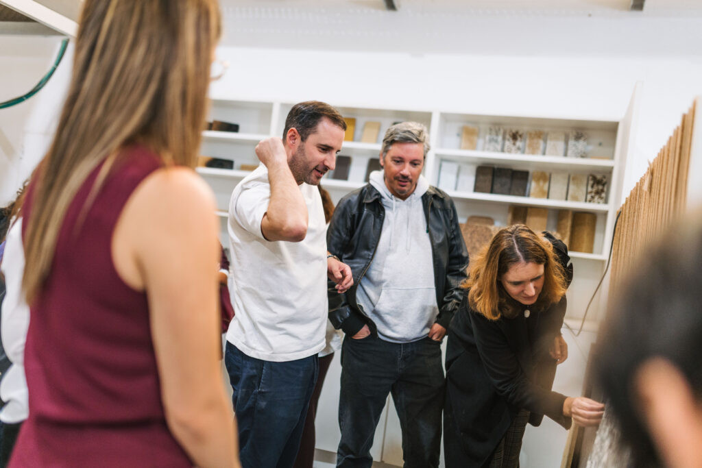 Tras visitar la fábrica participamos en un taller práctico de creación de DashBoard (tableros de presentación de materiales) con Material Bank Europe dónde descubrimos nuevos materiales y formas de presentación.