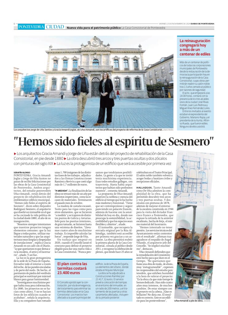 Con motivo de la reinauguración de la Casa Consistorial de Pontevedra el periodista Serafín Alonso nos realizó una entrevista que salió publicada el viernes en Diario de Pontevedra.